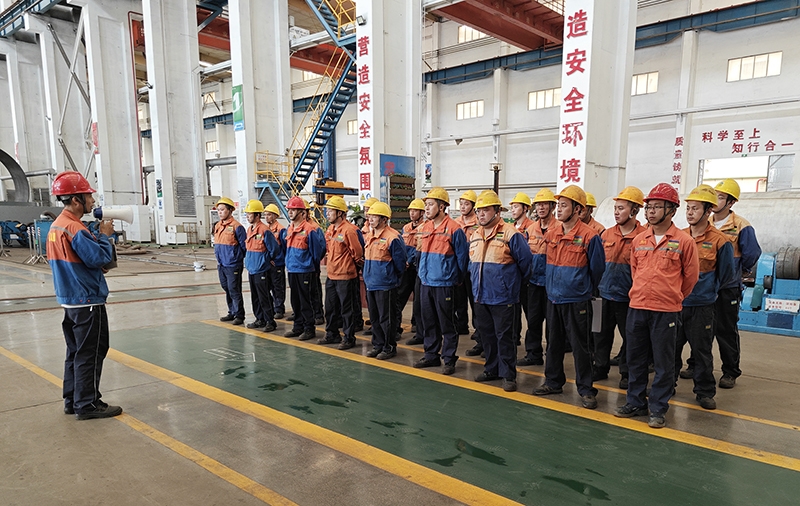 氯碱分公司作业前认真开展 “班前五分钟”安全活动,为提高活动效果,使用扩音喇叭进行讲话,在作业负责人对作业危害因素及相应的安全措施进行告知提醒后,监护人对票证类型、票证有效期、风险分析、安全措施以及个人防护用品配备要求等内容进行宣读,并对照作业人员签字栏逐一点名。最后,现场作业人员复述当天工作内容和风险、疏散路线,对存在风险进行互相提醒、补充,并共同宣读“本人已了解作业风险,承诺严格落实安全措施”。