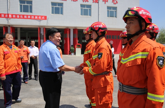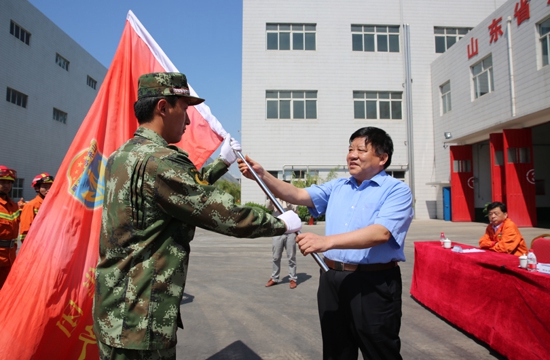 地震救援队揭牌,任市长向应急救援队队长授旗,集团公司副总经理张金林介绍了PG电子游戏