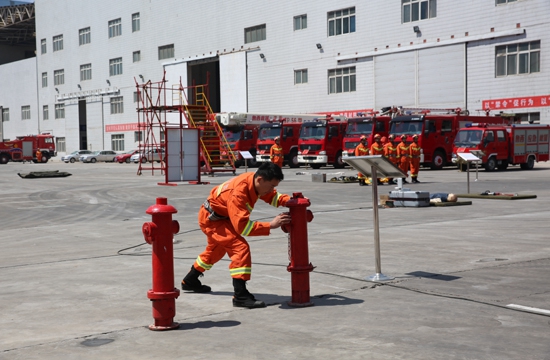 防震减灾工作情况。期间,领导一行还观摩了应急救援队队员表演的综合体能、单兵破拆救人、带压快速堵漏和涡喷消防车出水演练,参观了应急救援装备和接警平台等。