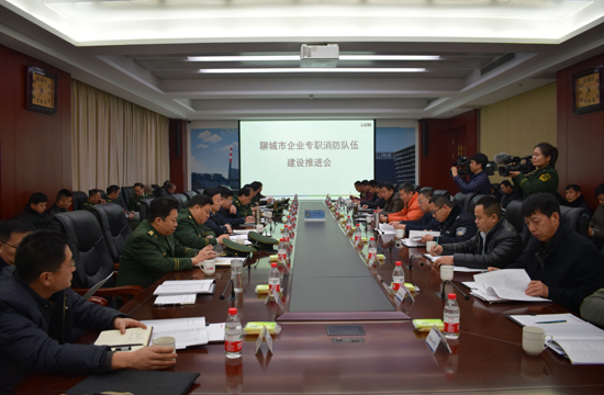 召开,山东省消防总队参谋长黄迁亮、聊城市副市长任晓旺、市公安局副局长李学孟,市应急办、经信委、安监局、国资委等部门领导,以及来自全市10家企业的专职消防队、22家大中型企业的分管领导等60余人参加会议。会议由聊城市公安局副局长李学孟主持,集团副总经理焦延滨到会并致辞。