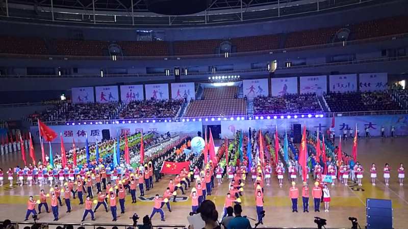 伴随着振奋人心的《运动员进行曲》,由百余名健儿组成的运动员方队踏着整齐的步伐,英姿飒爽意气风发地进入运动场。