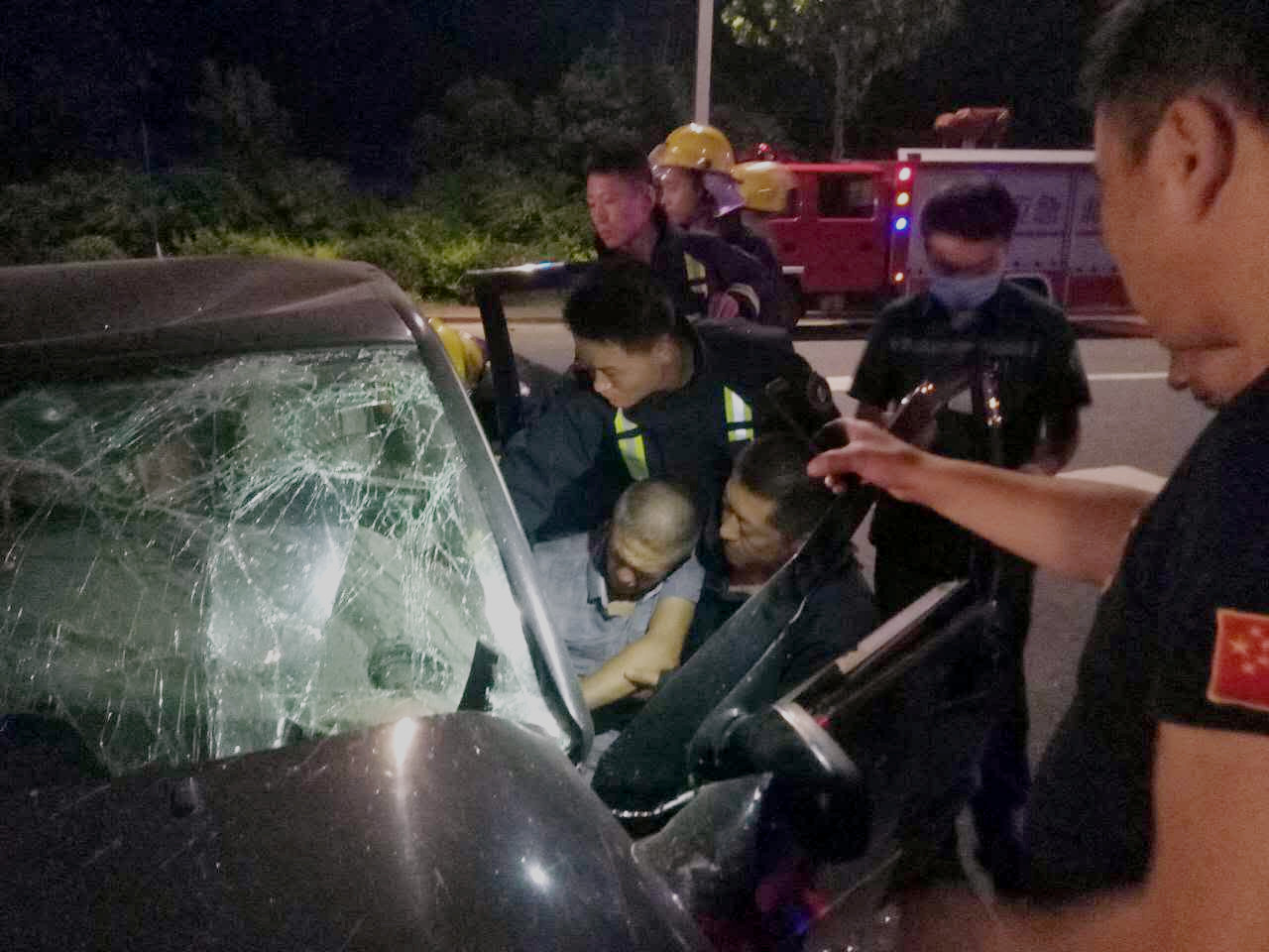 应急救援中心接值班应急调度报警,集团1#门岗西侧329省道发生交通事故,驾驶员被困车内情况危急,需应急救援中心实施破拆救人。接警后值班队长迅速组织队员开15吨水罐车和多功能救援车赶赴现场,展开了一场拯救生命的救援行动。