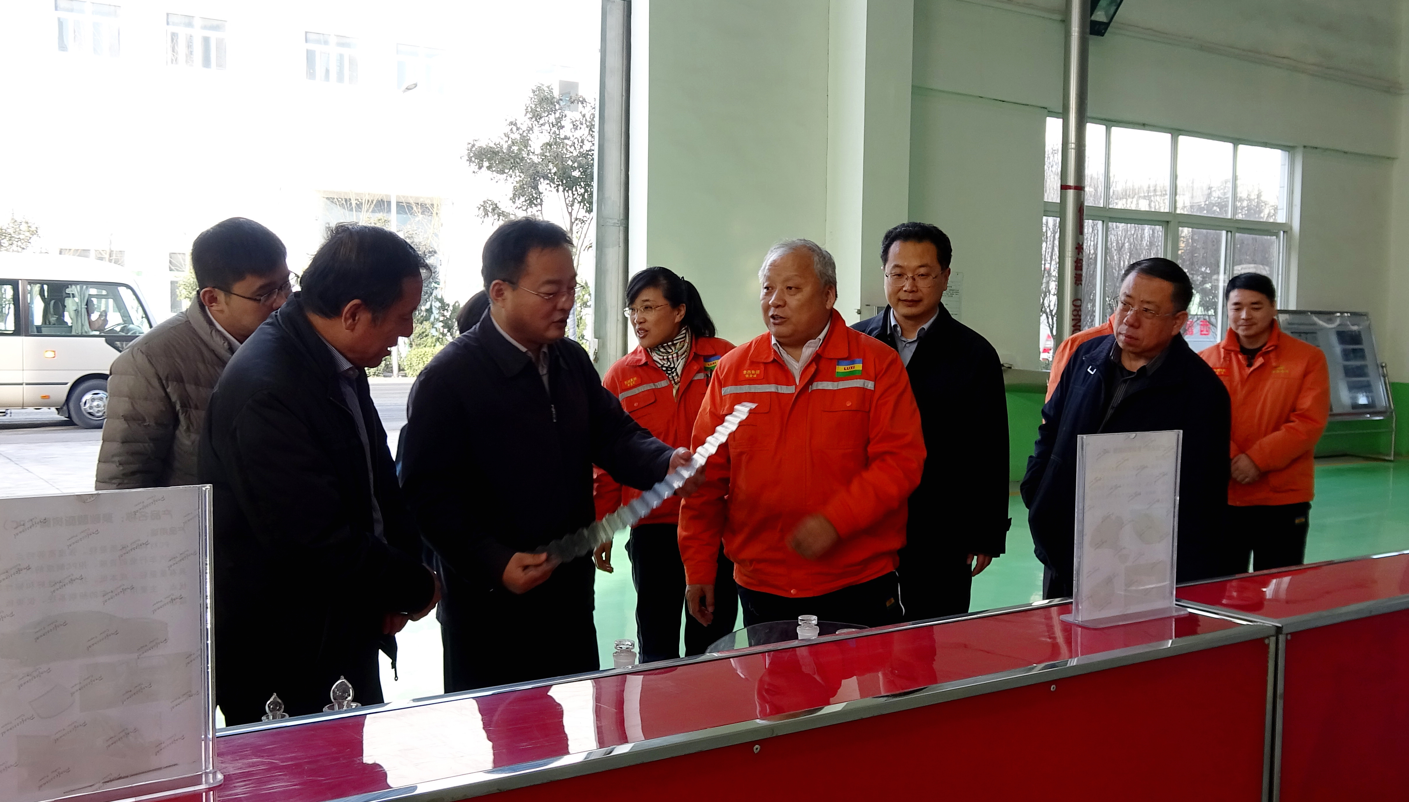 在聚碳酸酯包装厂房、尼龙6装置包装现场,领导一行拿起现场摆放的样品进行了仔细观看,并详细了解了产品的性能、应用领域、目前市场行情等。董事长张金成介绍了企业在化工新材料领域的发展情况,以及近年来企业围绕新旧动能转换、产业结构调整优化所开展的一系列工作。