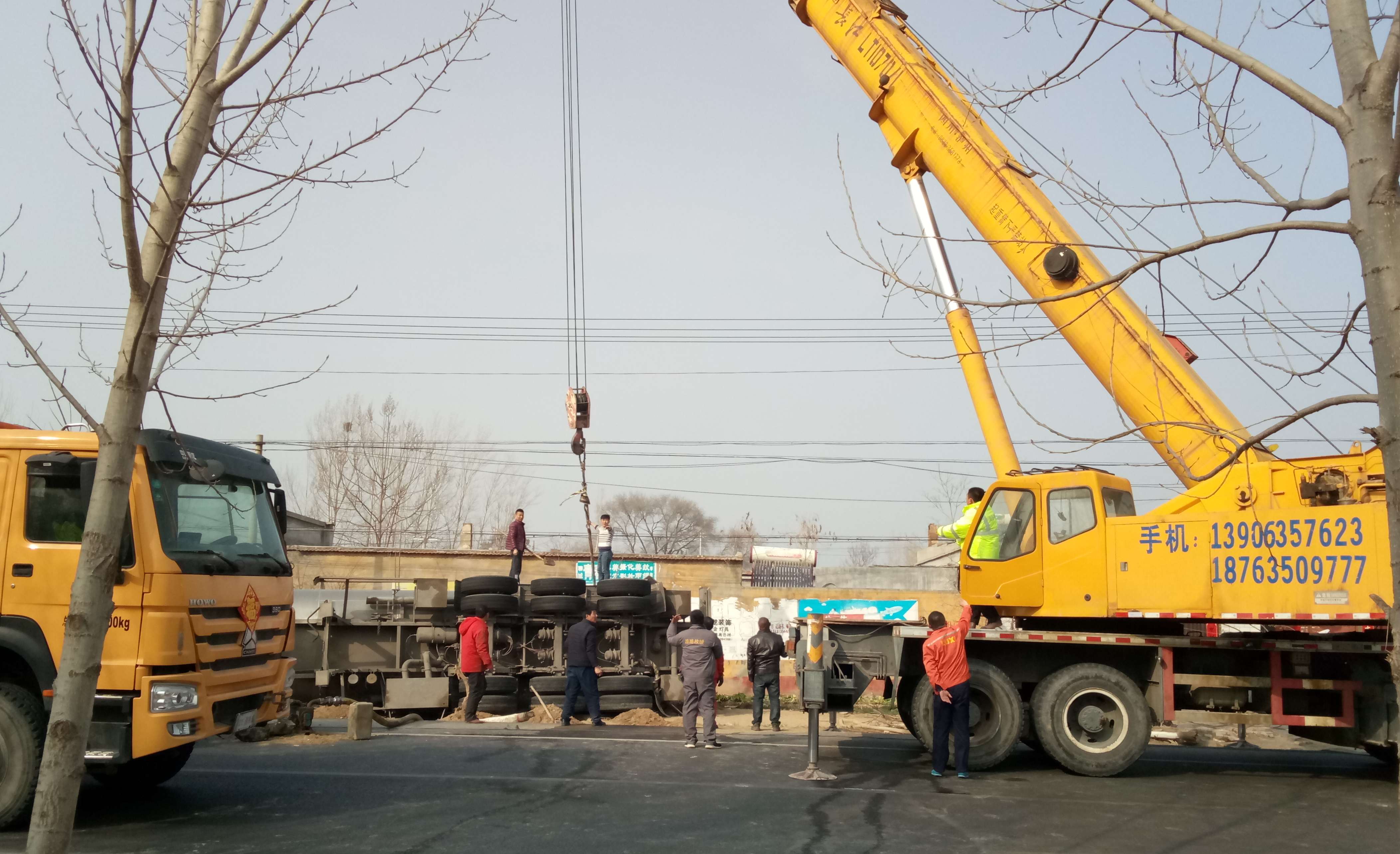 到达现场后,经与莘县消防队对现场情况进行分析,制定了“消除静电、安全倒罐、吊正罐车、牵引脱离”的救援方案,并安全处置险情,顺利完成救援任务。