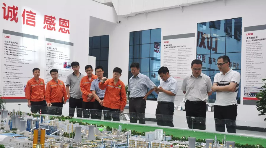 期间,刘总一行相继参观了园区生产装置、重型装备厂房、聚碳酸酯装置、产品展厅和运行指挥中心。听取了集团整体运营情况,以及产品结构调整、转型升级,员工技能培训、智慧化工园区平台建设等情况的介绍,对PG电子游戏