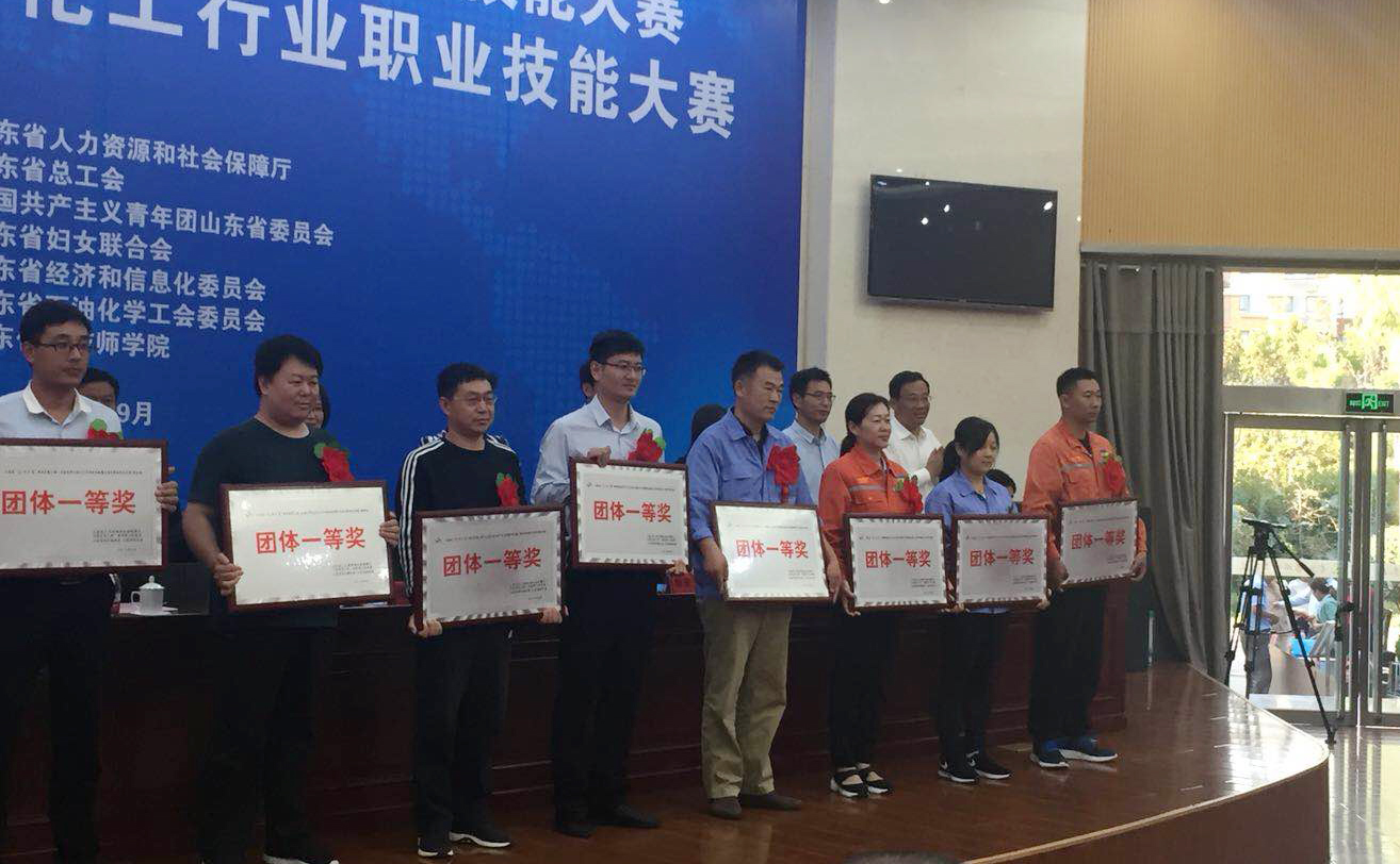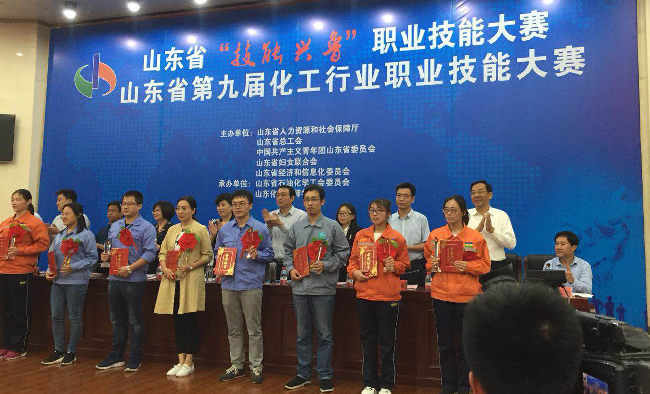 两支化学检验工代表队获得团体一等奖,张玉平和冯新两名选手获得个人成绩第一名和第二名,并荣获“山东省化工行业首席技师” 和“山东省化工行业技术能手”荣誉称号;两支化工检修钳工代表队获得团体二等奖,李广鹏获得个人成绩第二名,并荣获“山东省化工行业首席技师”和“山东省化工行业技术能手”荣誉称号。