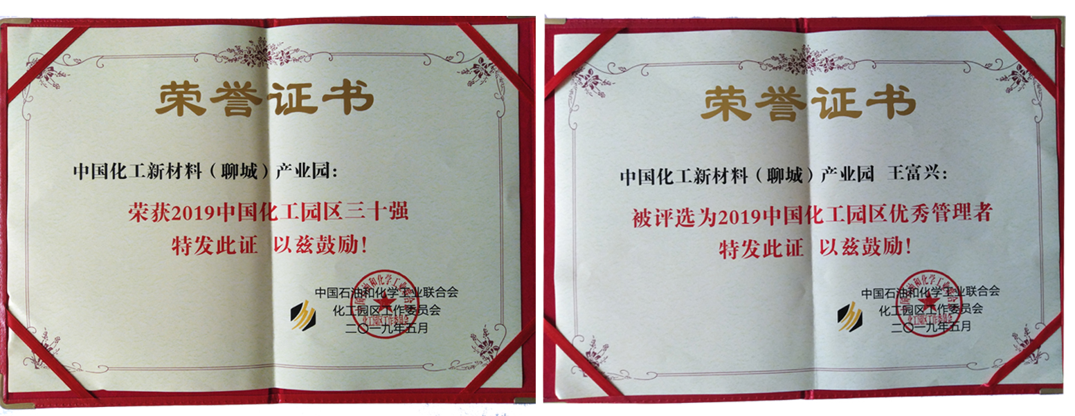 -中国化工新材料(聊城)产业园再次荣获“中国化工园区30强”。集团副总经理王富兴被评为2019中国化工园区优秀管理者。