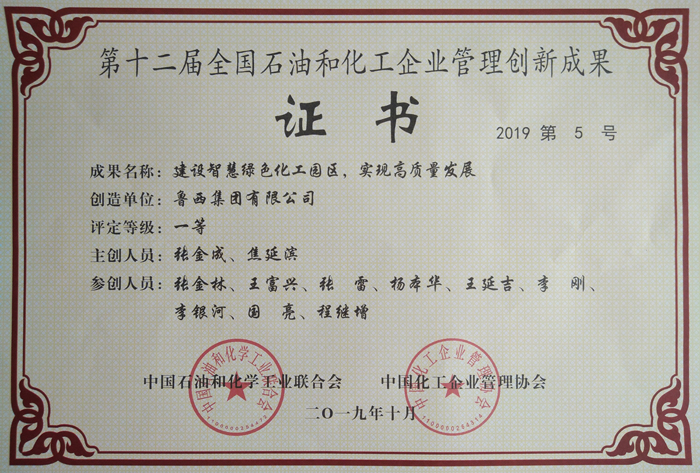 申报的“建设智慧绿色化工园区,实现高质量发展”被评为管理创新成果一等奖。