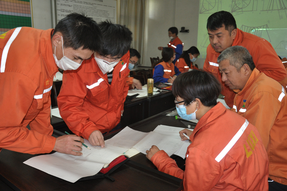 平阴PG电游装备公司培训室内,集团技术创新部铆工专业讲师杨继波正为职工传授铆工实训及技能鉴定过程中的常见问题和操作标准要求。