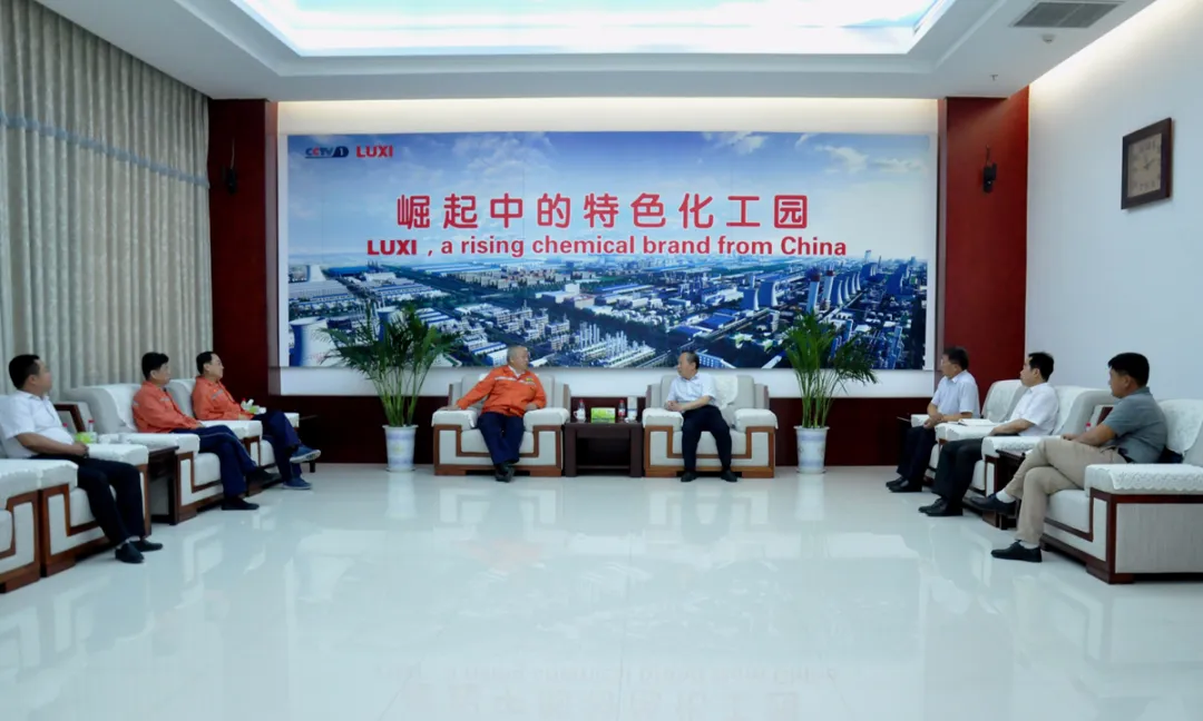 座谈中,董事长详细介绍了企业目前的主业构成、生产经营、化工园区的产业链结构以及与中化集团合作的进展等情况。