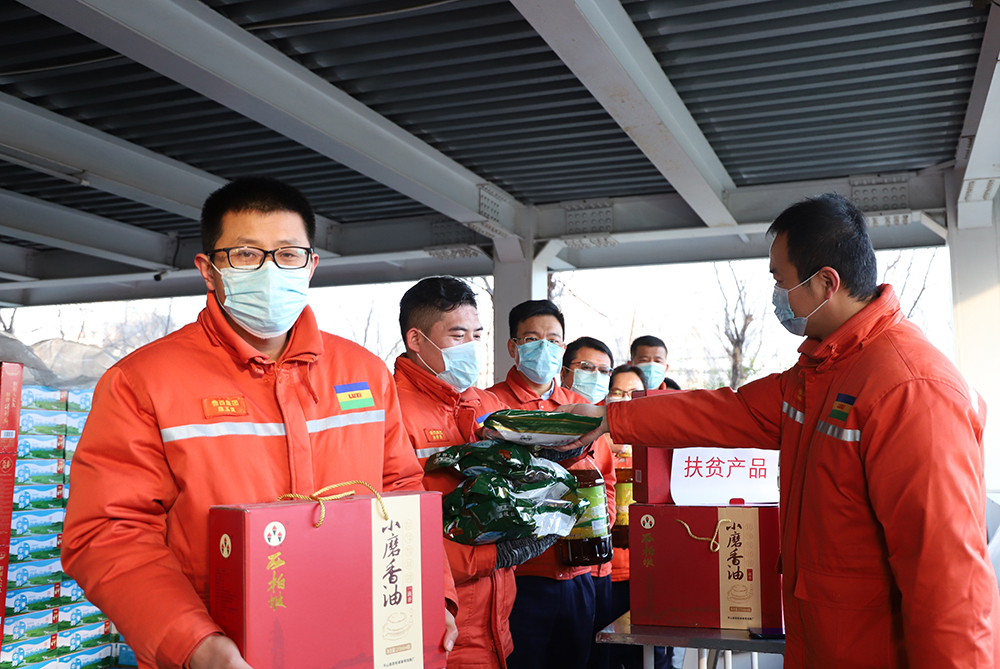 在春节来临之际,从革命贫困老区购进一批大米、木耳、蘑菇等农产品,当员工们得知购买的这些农副产品都是“扶贫产品”时,大家排队争相购买,不到1小时的时间就销售一空。大家以这种特殊的方式为老区人民奉献爱心。