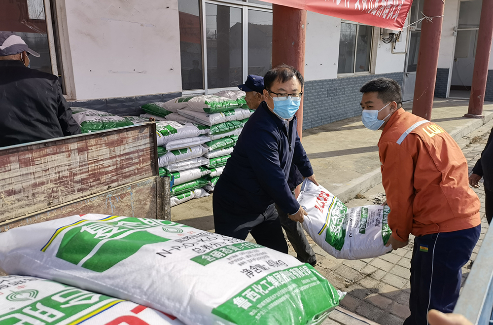 积极响应市行政审批服务局号召,到高唐县杨屯镇云庄村开展“双联共建 振兴乡村”活动。化肥事业部区域负责人与云庄村村委工作人员将春季小麦追肥所需的400袋肥料免费送到农户手中,并为农户讲解了春季追肥的重要性、小麦追肥的施用方法,以及本次赠送的硝基