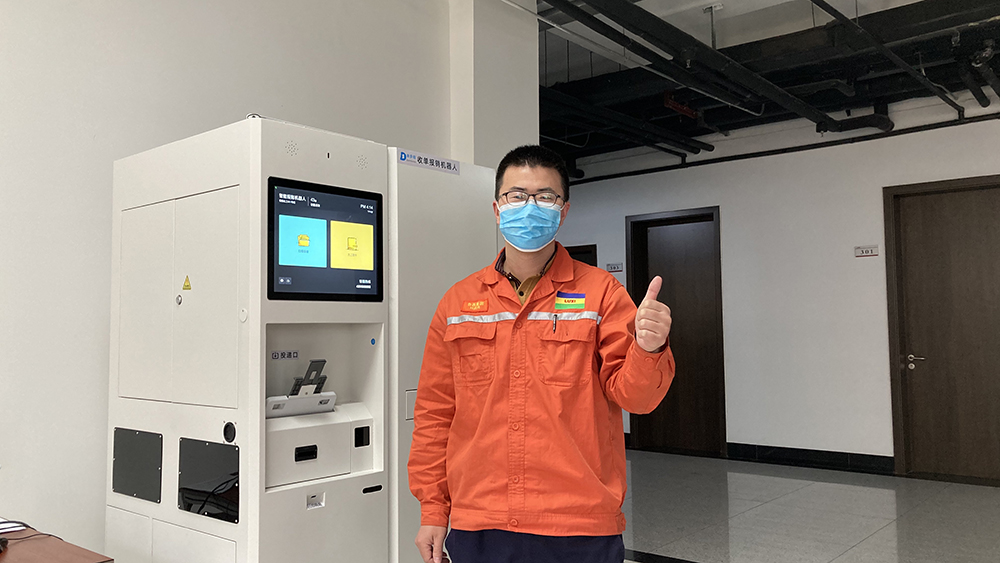 财务人员孟艳艳满脸喜悦,她说:“我们财务原来专门设立单据接收、登记窗口,每天都会有各部门人员拿着单据来窗口办理业务,我们要逐一和业务办理人员沟通、做好台账登记,有时一天下来有大约160份单据进行处理,感觉工作量比较大。现在不一样啦,大家可以随时通过智能收单机器人完成各类单据的快速投递。财务档案人员可以通过后台管理系统,根据实时掌握的收单机器中单据数量,集中安排时间收取单据,时间成本管理效果很明显。”