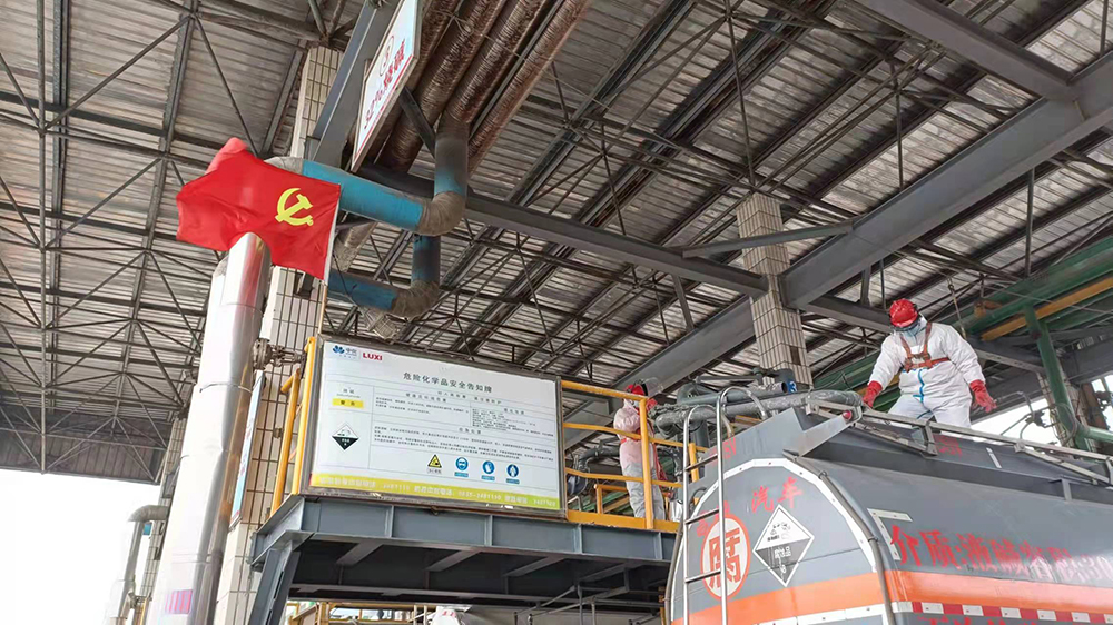 下属党组织液体装卸部党支部在防疫预案启动后驾押人员不下车,工作量增加的情况下,为确保装卸工和外协帮扶人员思想稳定、操作安全,设立党员服务流动岗。党支部书记带领党员干部深入装卸现场,发挥党员模范带头作用,对装卸量较多的岗位进行党员轮替定点帮扶,党旗高高飘扬在装卸现场岗位,为员工鼓劲加油,共闯疫情难关。