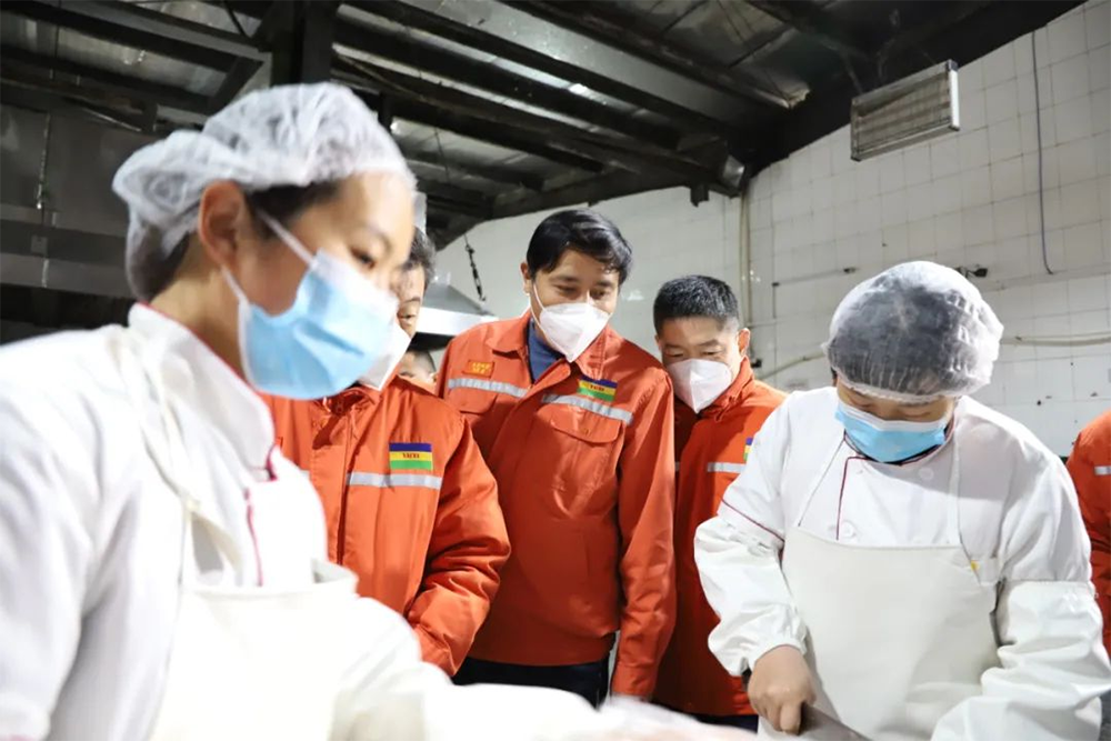 总经理王延吉一行先后来到运行指挥中心、第三职工餐厅、应急救援中心、装备制作现场、一号门岗、西区总控室,亲切看望慰问坚守岗位的干部员工,代表公司党委、公司向大家致以新春的诚挚问候和美好祝福,并通过大家向全体员工及家属拜年。