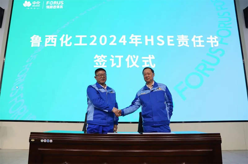 会议期间举行了2024年HSE责任书签订仪式,王力刚与制造与工程事业集团、多元醇公司、聚酰胺公司等6个企业代表分别签订2024年HSE责任书。