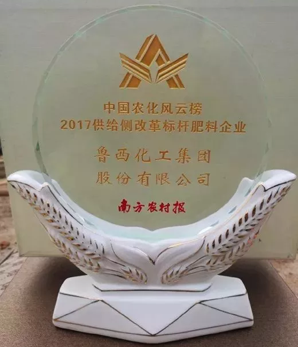 凭借研发、推广新型农资和新模式的能力,以及在农资行业供给侧结构性改革做出的突出贡献,荣获“2017供给侧改革标杆肥料企业”称号。