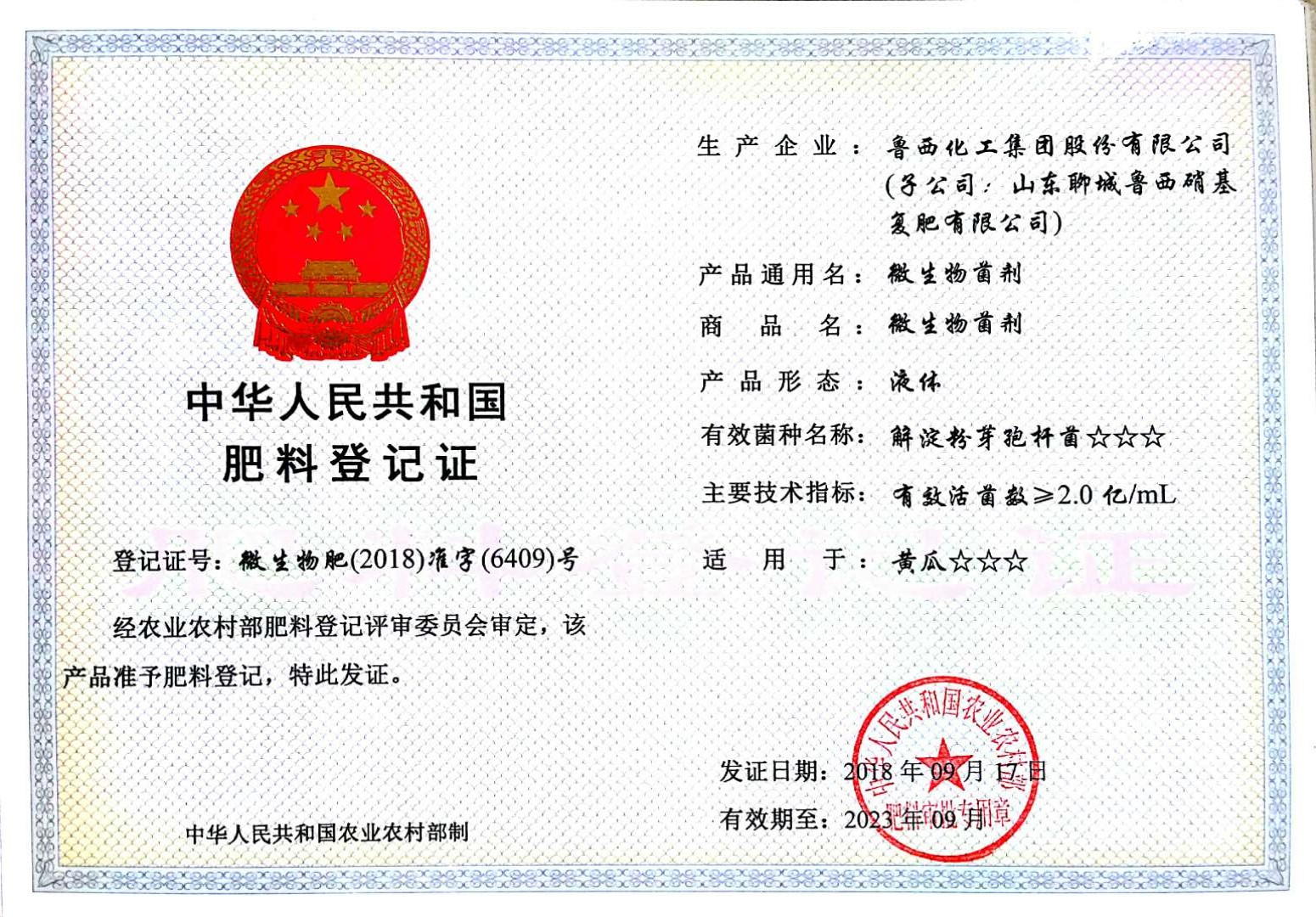 农业用微生物菌剂的生产、检验条件、质量管理体系以及肥料肥效试验、毒性试验综合考评的结果,表明对该肥料质量、效果和安全性的认可。该产品将填补企业微生物肥料方面的空白,也将为集团增加效益贡献新的力量。