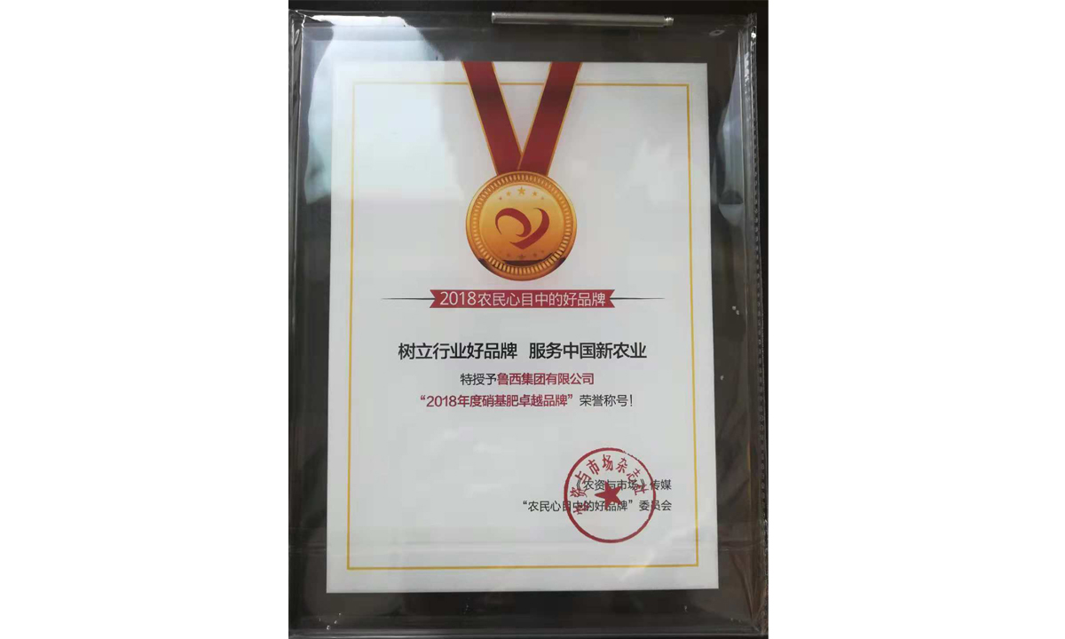 有限公司荣获“2018年度硝基肥卓越品牌”称号。