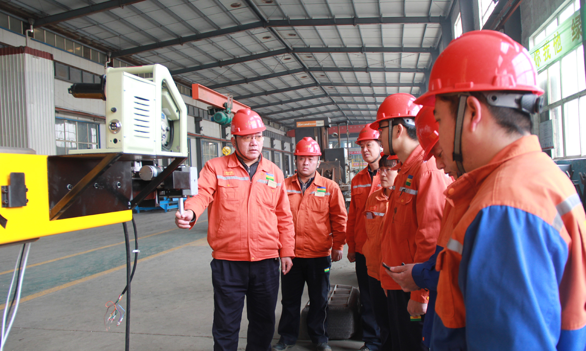 其后,党支部张书记在制作厂房现场针对大型设备工具的使用,详细讲解了龙门焊机及组立机使用的基础知识、十字大臂焊机的原理、应用及预防措施。期间,张书记对大家提出的疑难问题进行了解答。指出使用先进自动化设备、工具,一是提高了产品质量和工作效率;二是降低了劳动强度;三是减少了焊接产生的烟尘,改善了作业环境。并要求使用人员务必保证设备在良好的状况下运转,确保机器设备、工夹具等精度达到生产要求,确保产品“一次做到最好”。