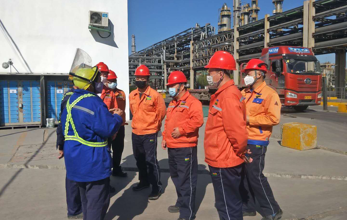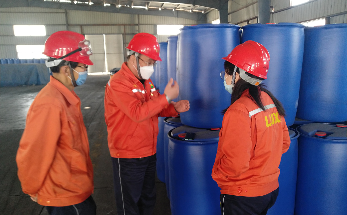 3月16日,国际贸易公司部长扈瑞祥主动到危化品包装库房,查看首次使用塑料桶进行灌装甲酸的情况,并对集团LOGO的运用提出改进建议。这是针对远洋区域客户反馈,对前期出口某产品使用的钢制桶改为PE桶包装进行了改进,虽成本上稍微增加,但可以大大降低产品被二次污染的概率,提升我们的产品质量全流程管控,做好客户的终端服务。另据扈瑞祥部长介绍:“甲酸作为直接用于牧草收割及青贮的产品,为避免甲酸液体对人身伤害事故的发生,采取直接添加食品级“胭脂红”粉末的方式来增加辨识度。为避免粉末散落现象,国际贸易公司积极改变粉末添加方式,新订单发运前,提前与客户及甲酸灌装人员沟通,将粉末按一定比例配成溶液加入包装桶内。同时,添加节点改在拆卸包装桶防护膜前添加,以防止添加过程中再污染包装桶”。改进后取得较好效果,并得到客户的高度认可。